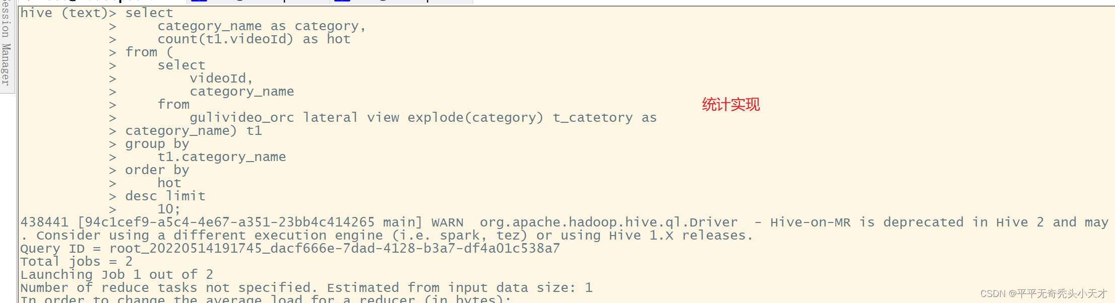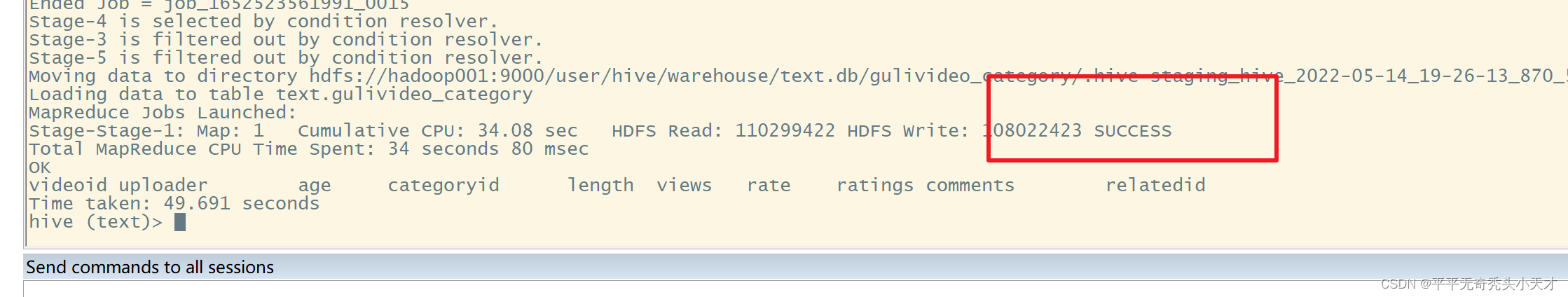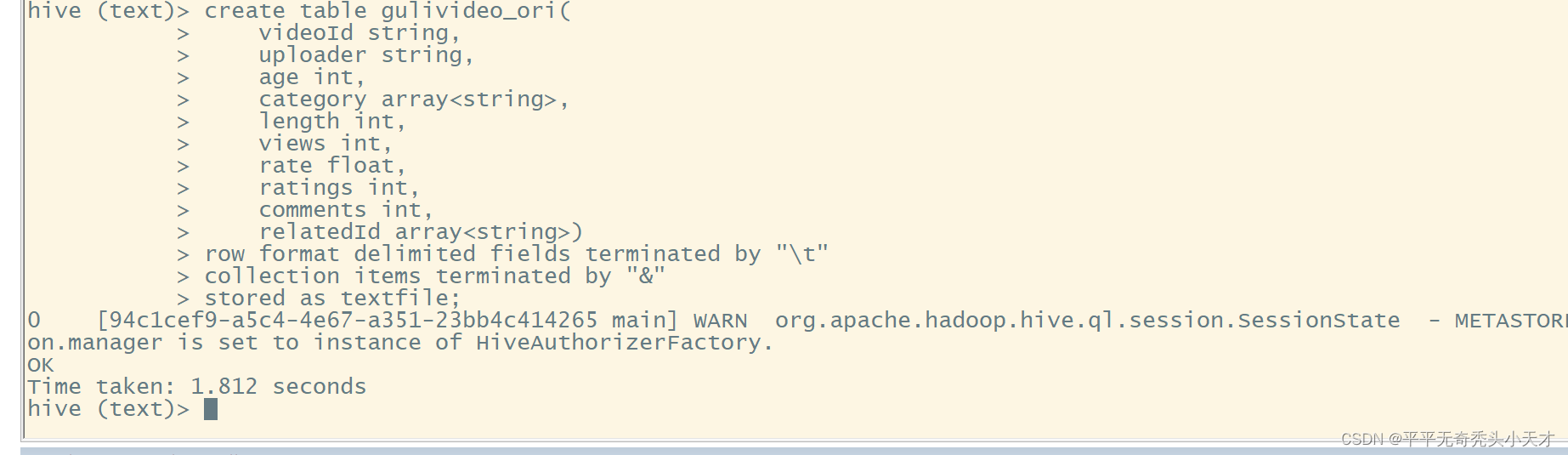 hive (text)> load data inpath "/guliout" into table gulivideo_ori;