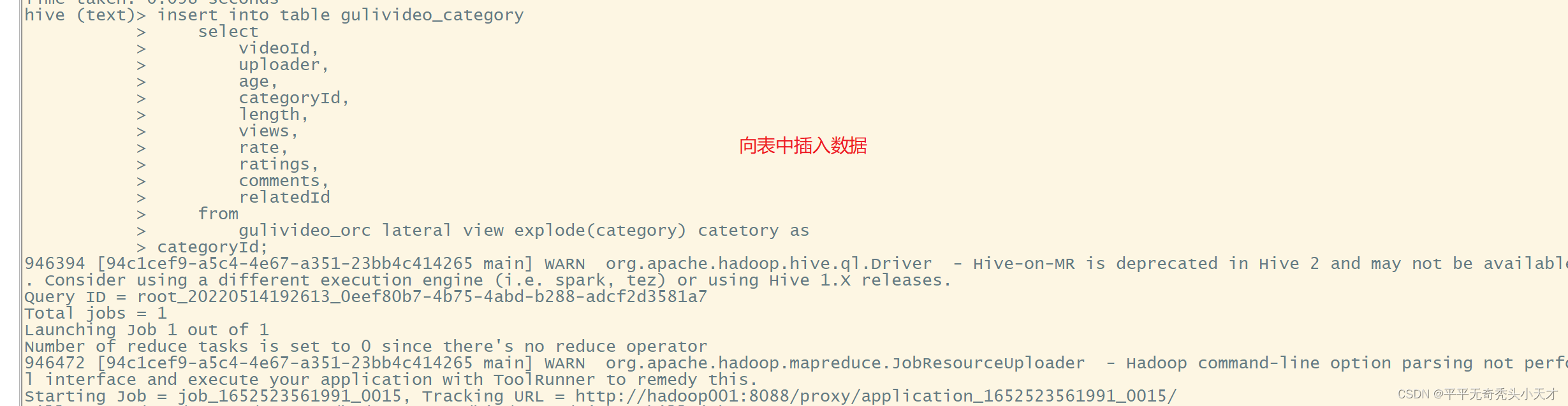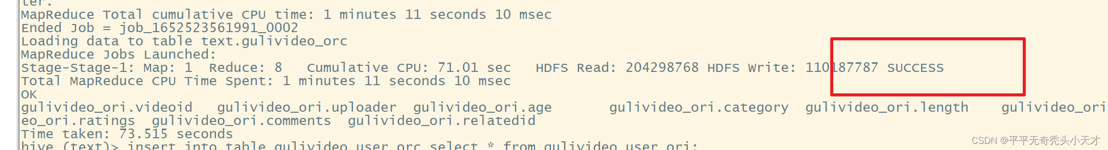 hive (text)> insert into table gulivideo_user_orc select * from gulivideo_user_ori;