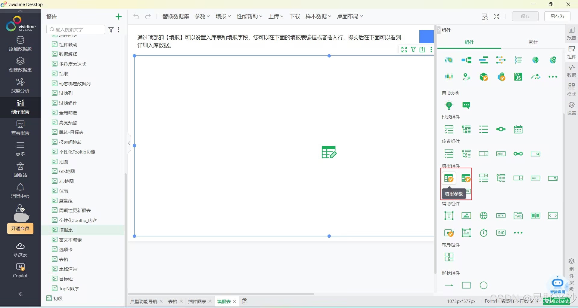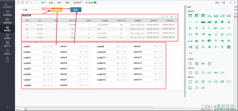所以,这里我不使用填报参数组件,尽管我之前是拿它去开发的;而使用大量的文本参数组件来作为用户输入的地方。