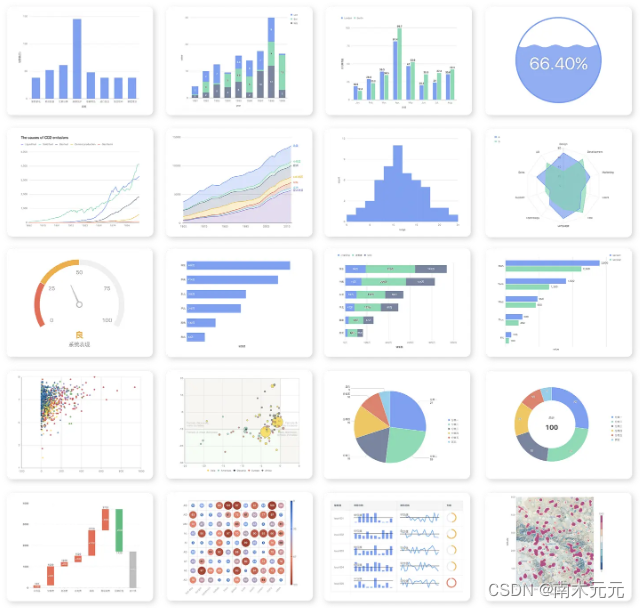 说到数据可视化,在很多人的印象里,可视化就等同于制作下面这些美丽的图表。
