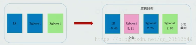 模型输出作为新模型的输入,结果做交,做反,之后在通过线性回归,构建模型权重