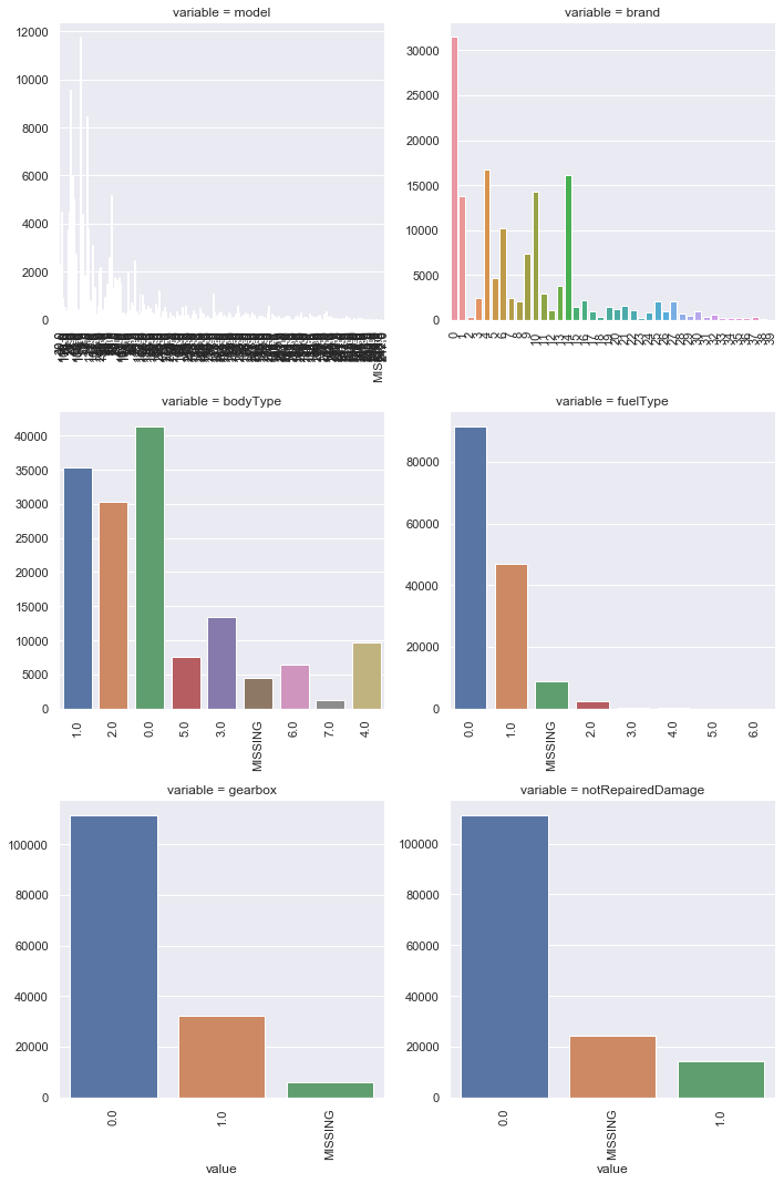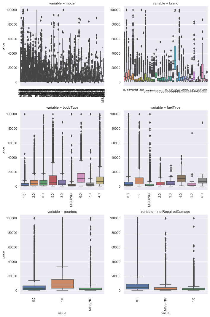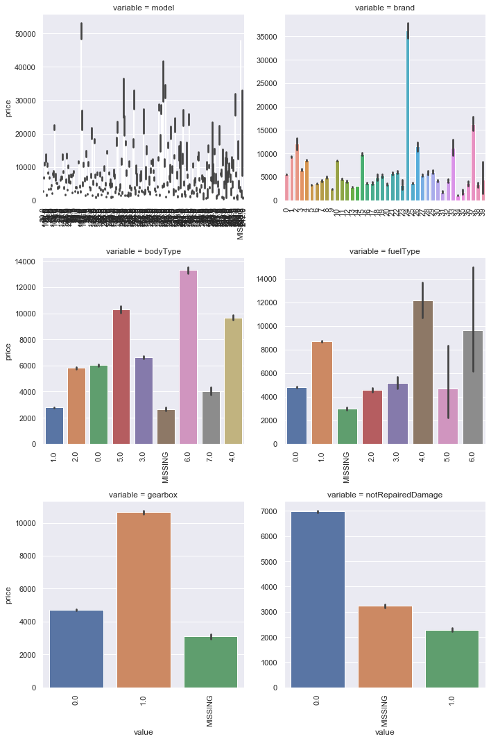 f = pd.melt(Train_data, id_vars=['price'], value_vars=categorical_features)