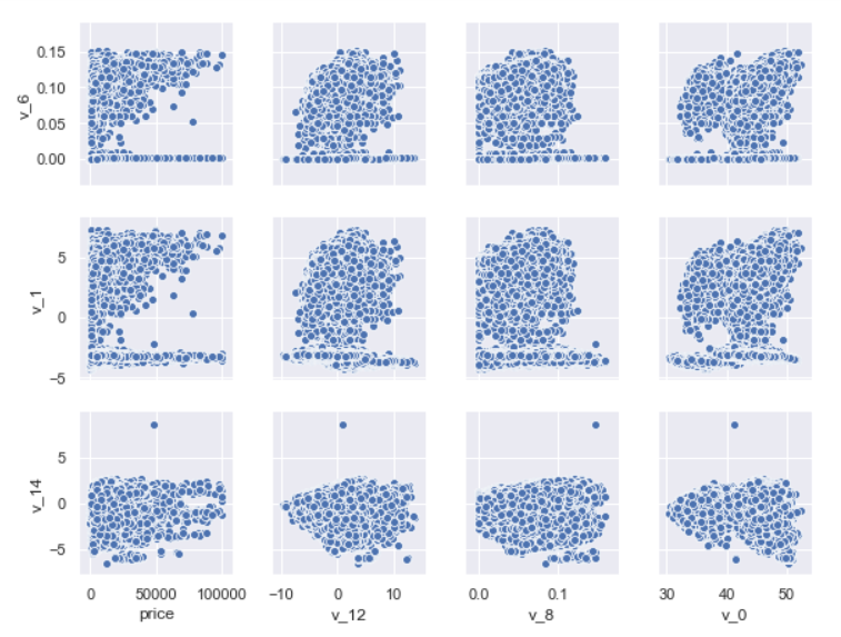 columns = ['price', 'v_12', 'v_8' , 'v_0', 'power', 'v_5', 'v_2', 'v_6', 'v_1', 'v_14'] # 根据前述计算的相关系数,挑选相关性较大的变量