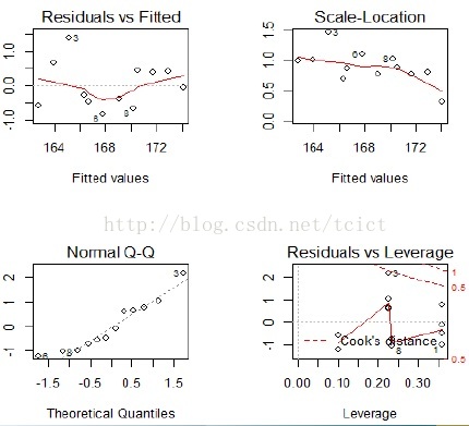 观测值与拟合结果的残差使用函数residuals 来计算。