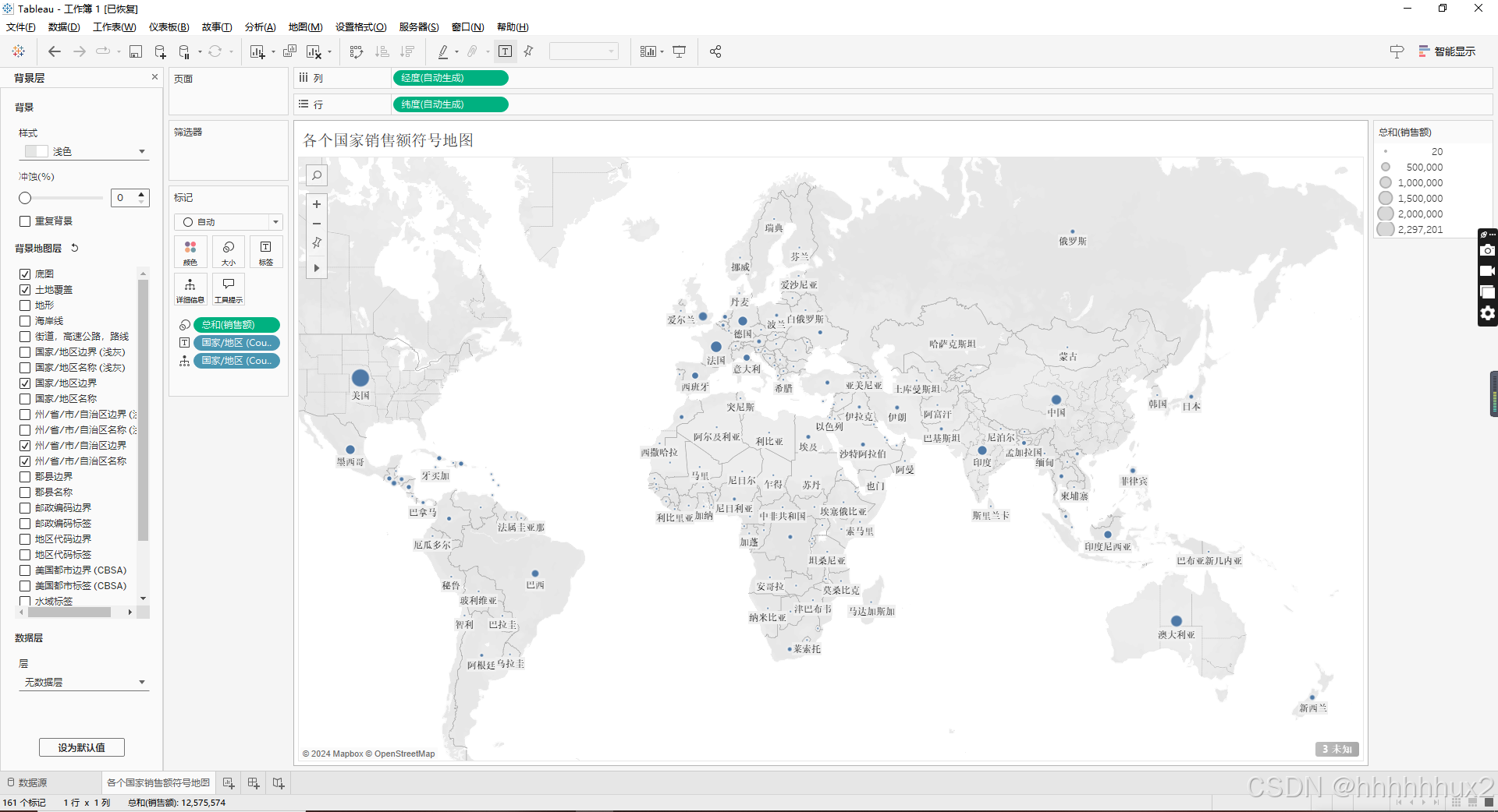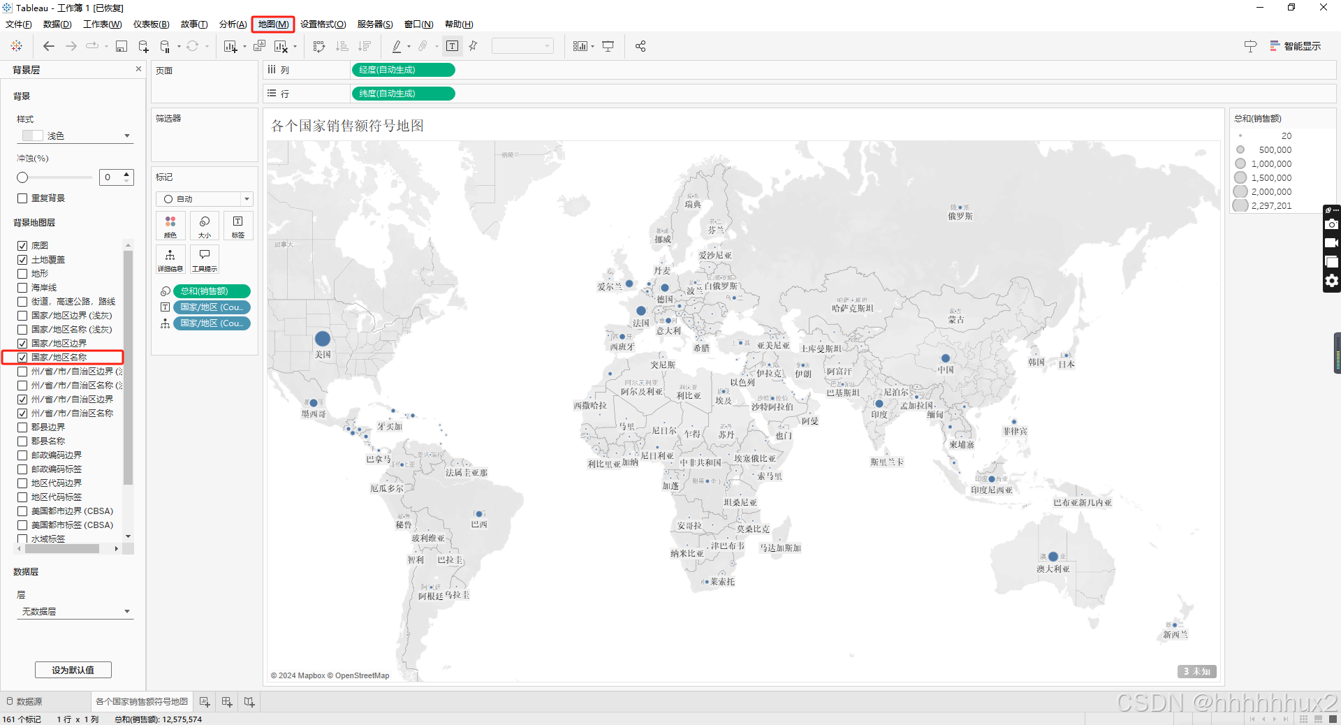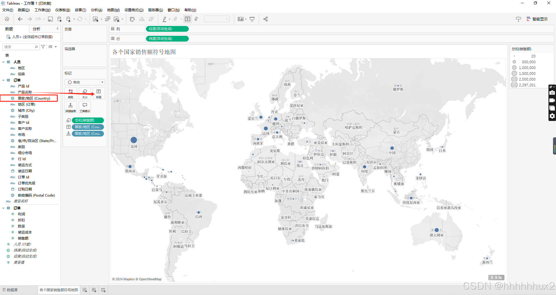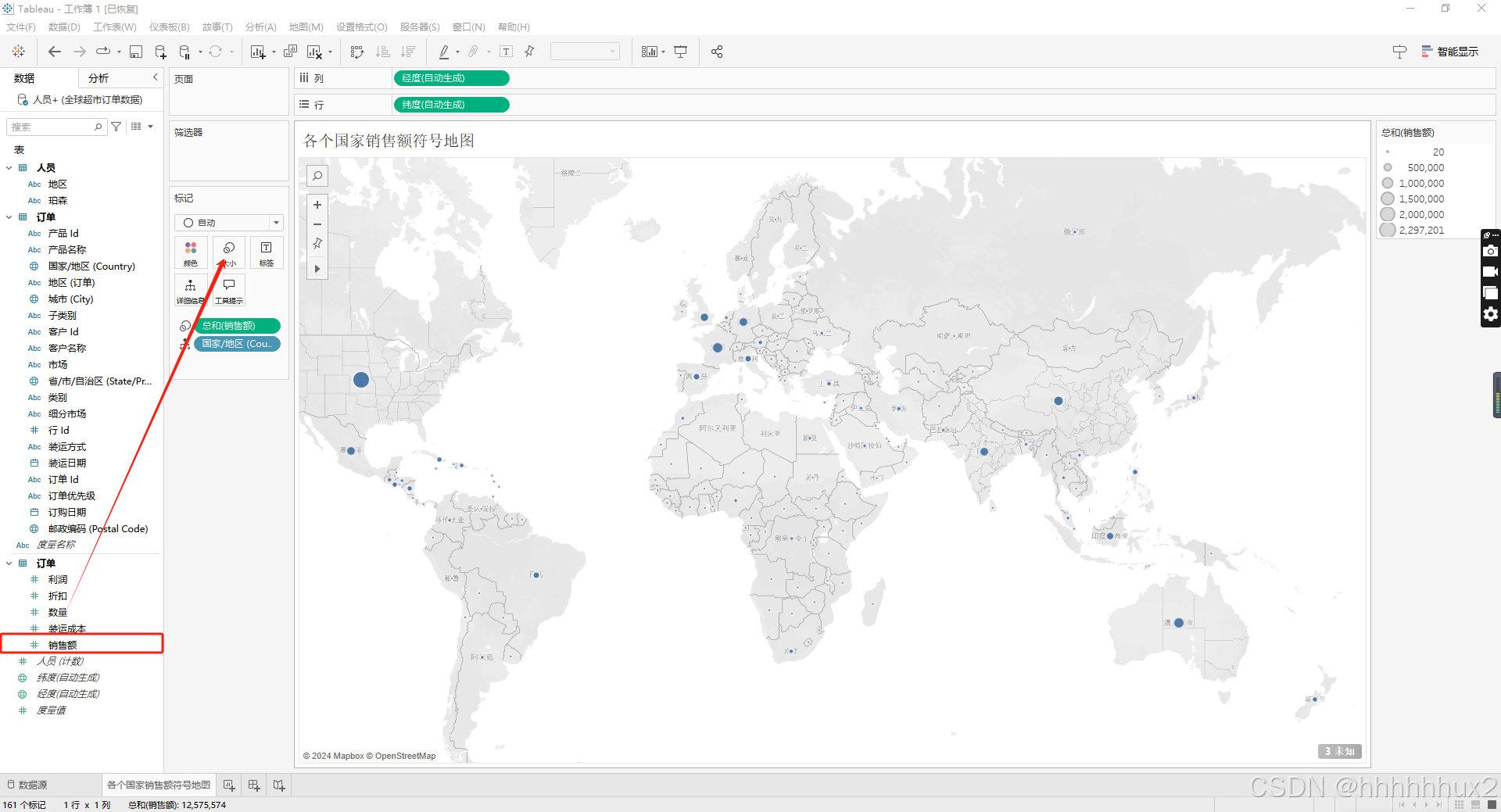 把销售额拖拽到标记的大小处