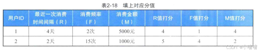 用这个方法,计算出表里两位用户的R、F、M值。