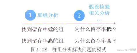 在分析用户留存或者流失问题的时候,可以先使用群组分析方法找到留存率低的组:然后使用假设检验、相关分析等方法,分析这些组留存率低的原因。还可以先使用群组分析方法找到留存率高的组,然后分析为什么这些组留存率高。