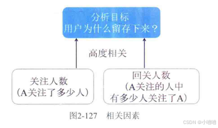 推特团队通过相关分析发现,关注人数和留存率高度相关。当用户关注人数在30人以上,用户就会留存下来。通过继续深入分析,推特团队又找到了一组相关关系:用户关注的30个人里有多少人关注他们和留存率高度相关。