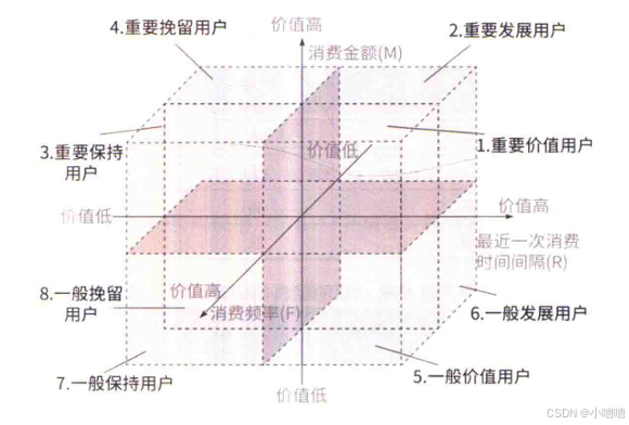 把这3个指标作为坐标轴,就可以把空间分为8部分。