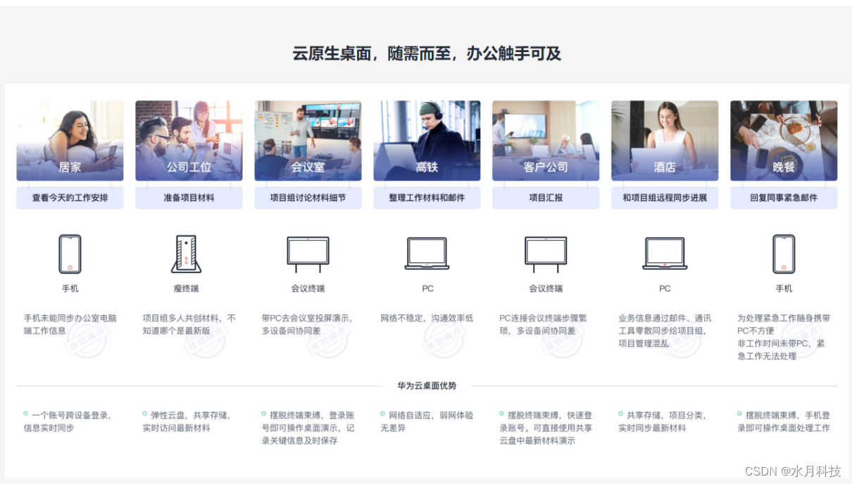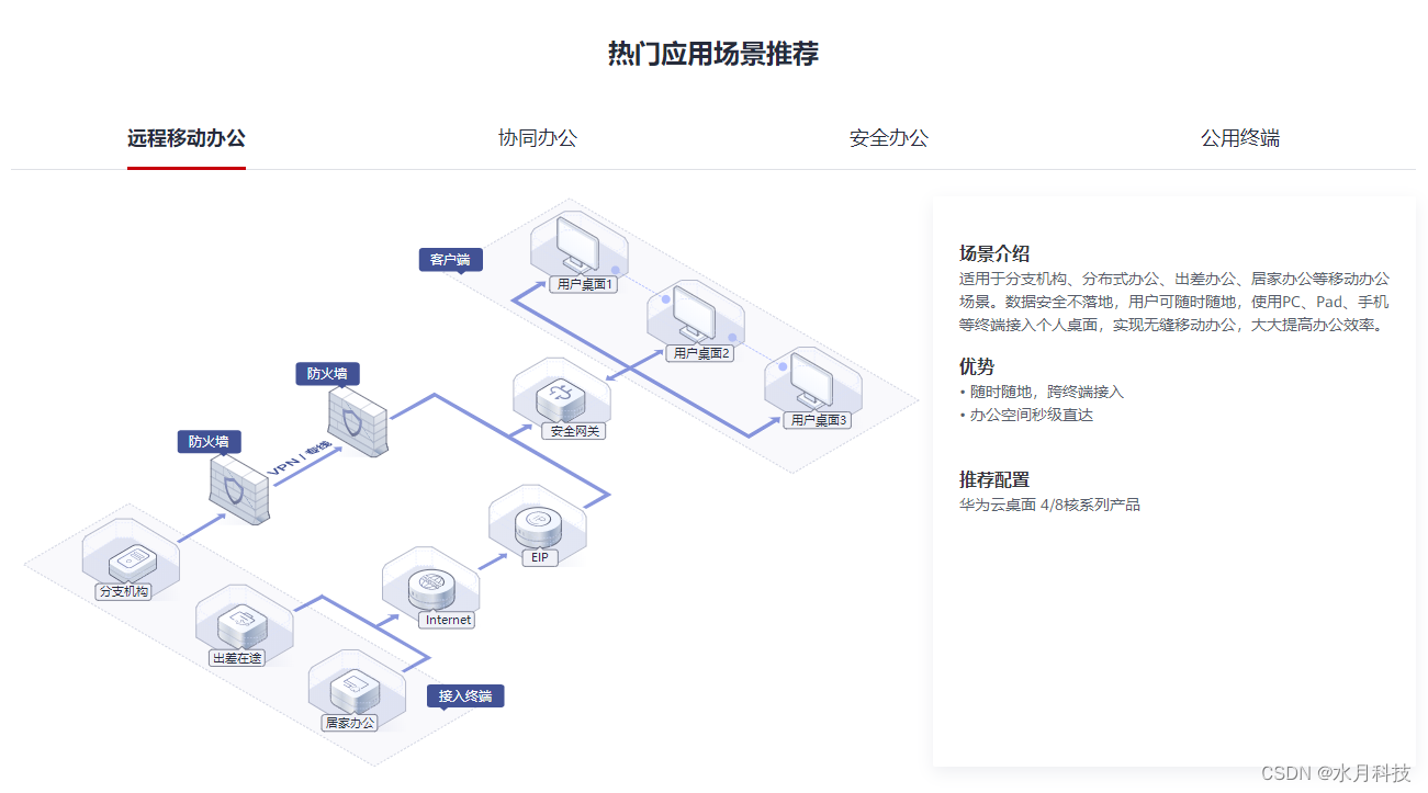 另外,针对不同企业使用场景不同,华云云桌面还提供了不同的定制方案,比如电商保险行业更加注重数字资产与信息的安全性;物流、连锁门店、加油站等企业由于员工多且分散则更需注重企业的管理与运维;汽车制造、模具行业因为涉及到设计部门繁多和员工需要经常出差等问题对移动办公和协同办公更加重视。针对企业的不同特点,华为云桌面可以提供不同的云上办公服务,满足不同企业的个性化需求。
