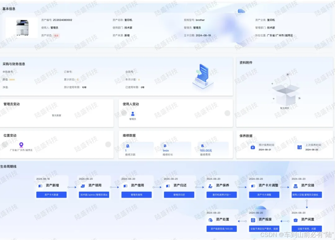 FAM固定资产管理系统红蜂-资产档案全生命周期展示图
