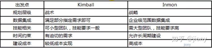 Kimball方法对团队技术水平要求不太高,更易于实现,从小型的主题域数据集市建设起,但在逐步建设过程中,联合维度数据仓库的一致性较难控制,适用于战术层级的规划,或是有迫切的目标需要实现。