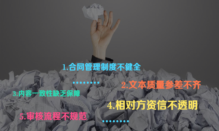 在传统的企业合同管理过程中,风险大、管控难、成本高、效率低是困扰企业的四大突出问题,具体表现在: