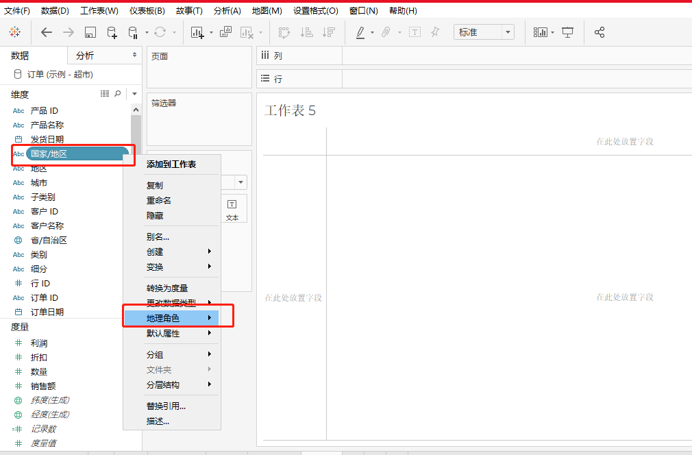 一、右键国家地区和城市字段分别设置为地理角色-国家地区和城市