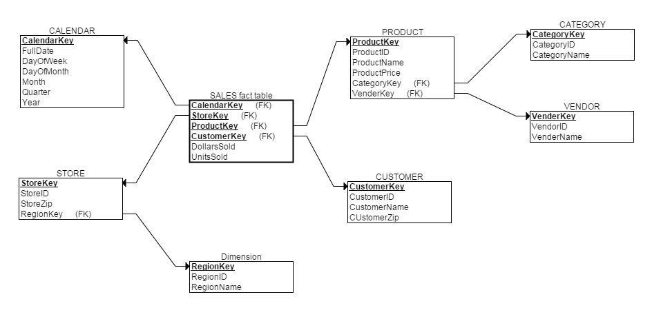 c. 维度STORE可由关系STROE和关系REGION连接得到;