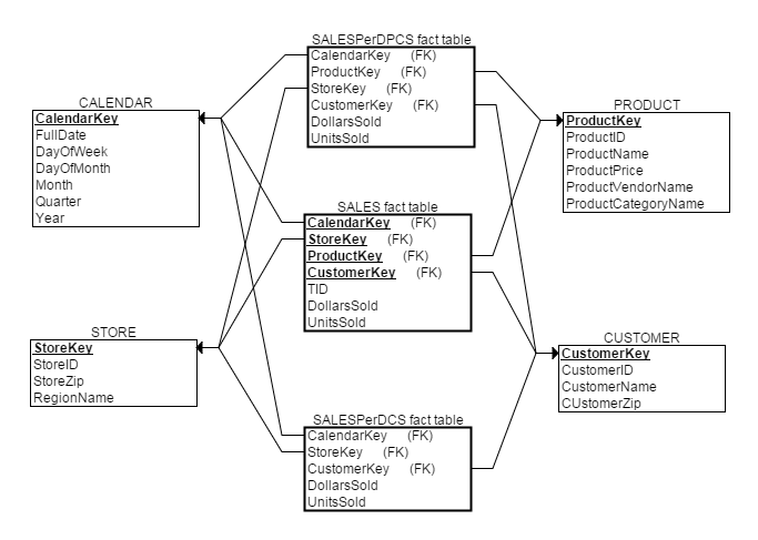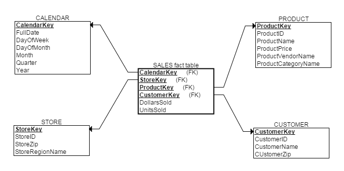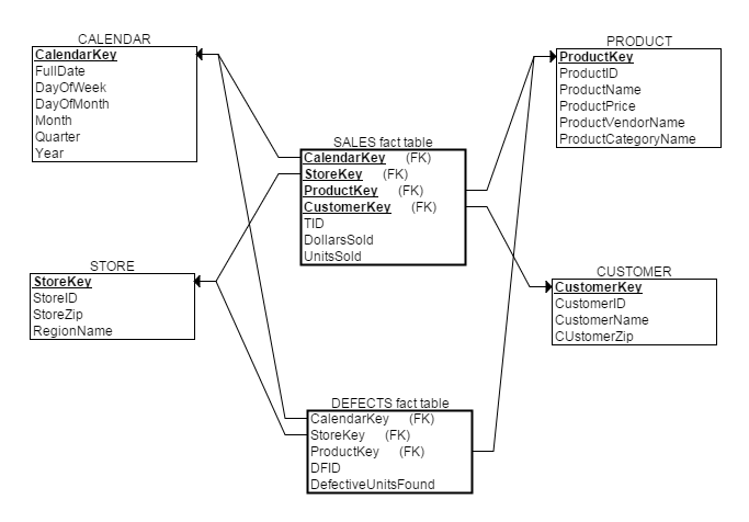 本例中,根据产品(PRODUCT)、顾客(CUSTOMER)、商店(STORE)、日期(DATE)对销售额进行分析是非常有帮助的;