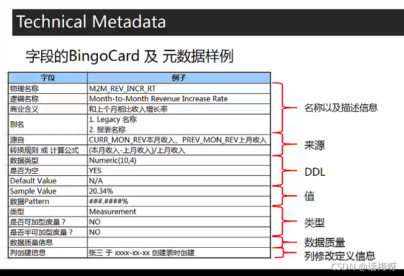 通常还要定义一系列相关元素的负责人,需要他们对Business Metedata 进行日常额维护,以确保元数据的准确、完备与及时。