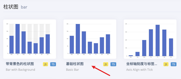 - 选择一个示例模板:以简单柱状图为例