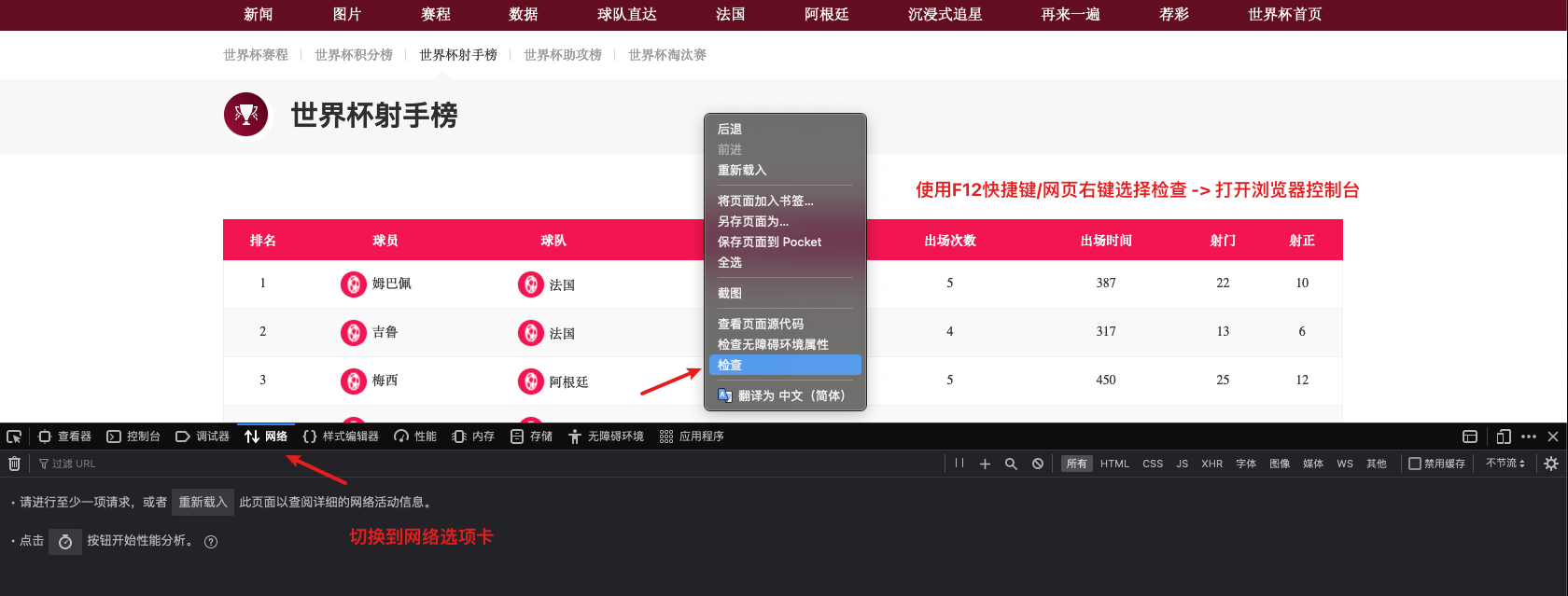 - 点击数据下的射手榜: