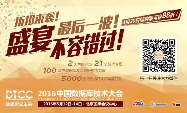 作为国内数据库与大数据领域最大规模的技术盛宴,2016第七届中国数据库技术大会(DTCC)将于2016年5月12日-14日召开。