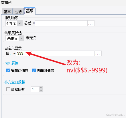 在报表中给单元格加个函数控制 nvl($$$,-9999) 双击单元格设置'自定义显示'
