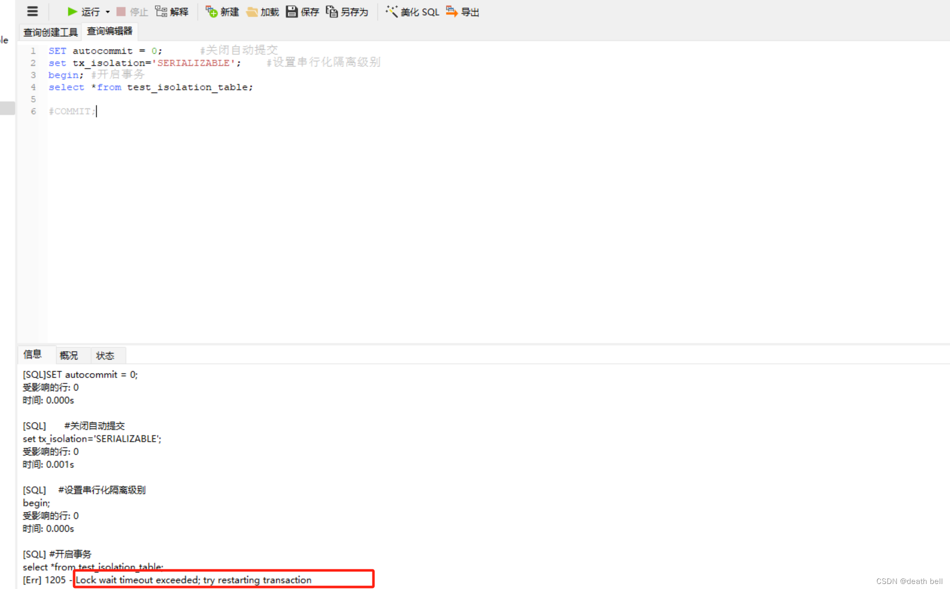 set tx_isolation='SERIALIZABLE'; #设置串行化隔离级别