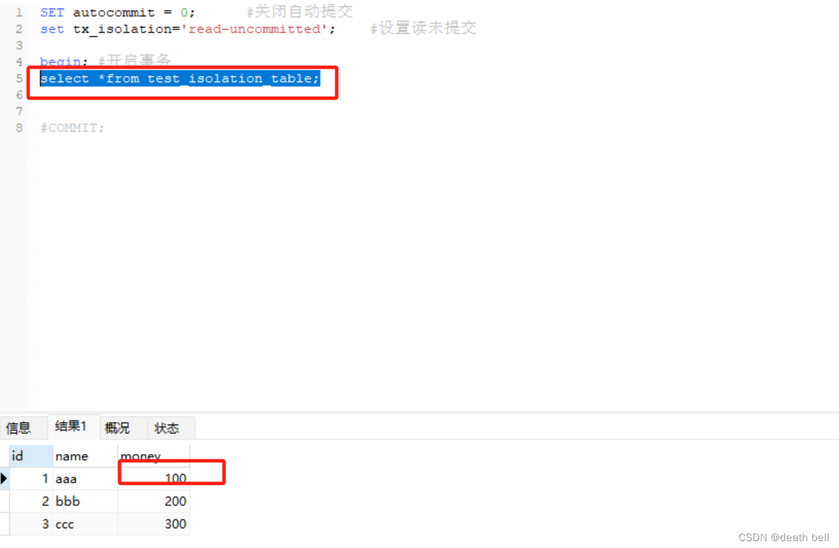 INSERT INTO `test_isolation_table` VALUES (1, 'aaa', 100);