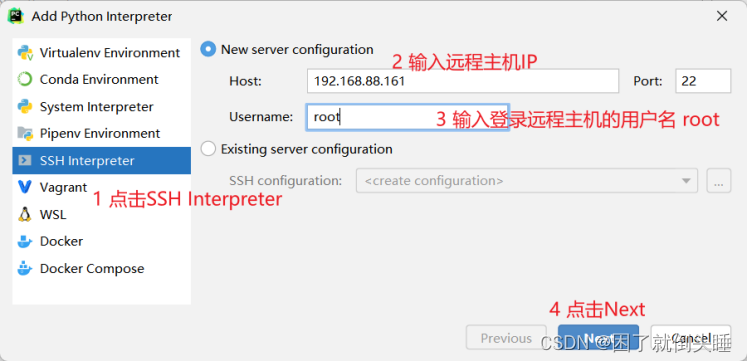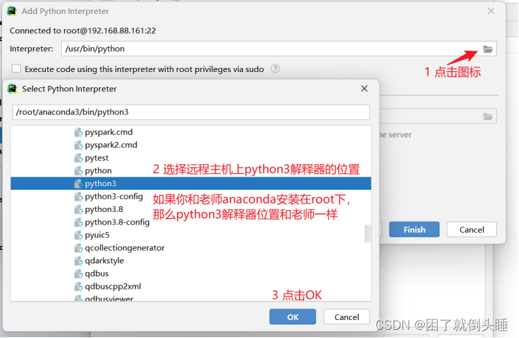 注意: 本次这里配置远端环境,指的连接虚拟机中虚拟环境。可以配置为Base环境,也可以配置为其他的虚拟环境, 但是目前建议配置为Base环境,因为Base环境自带python包更全面一些