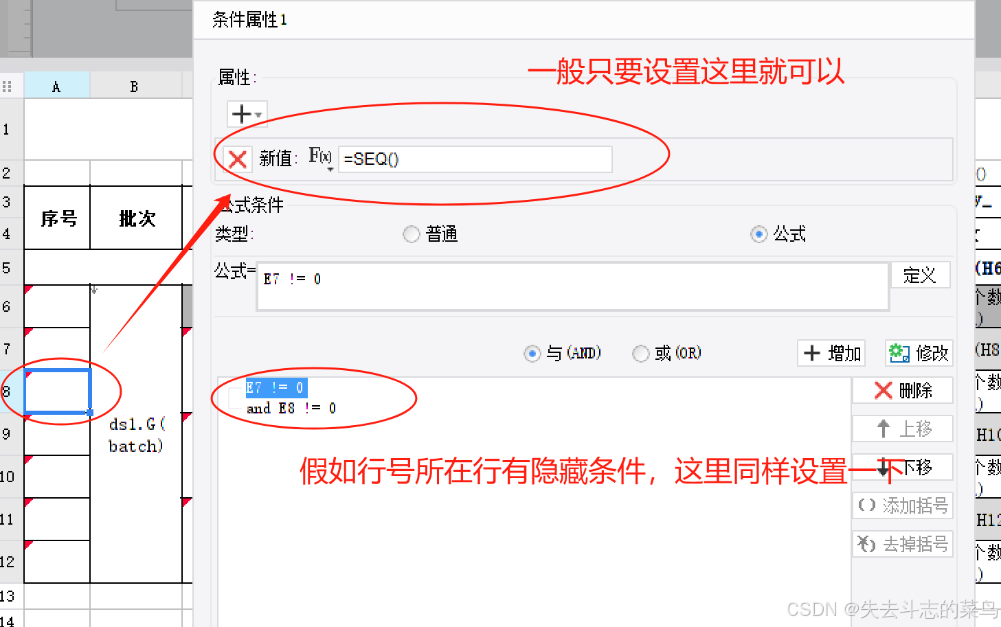 没有隐藏行的行号单元格直接设置条件值为SEQ()