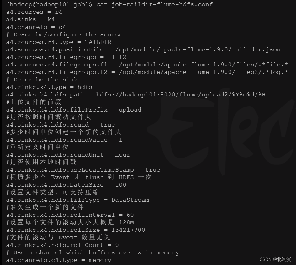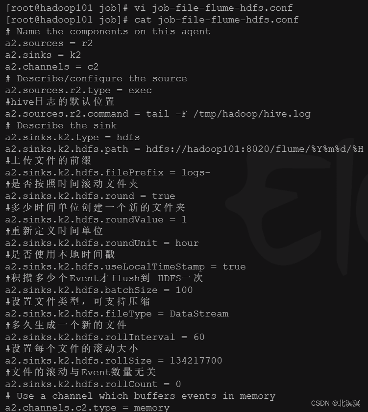 ③在job目录下创建监听数据的配置文件:job-file-flume-hdfs.conf