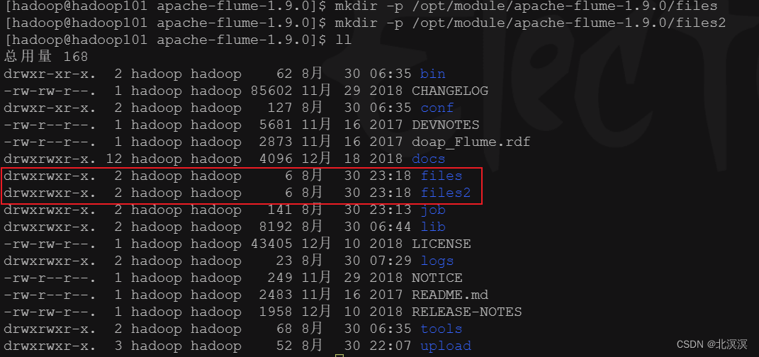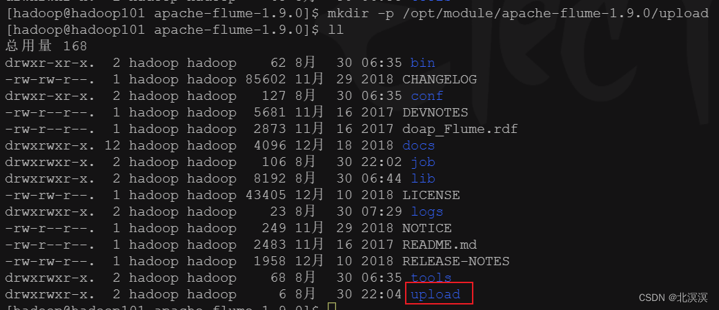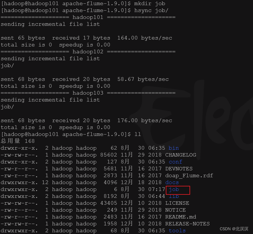 ⑤在flume安装目录下创建一个job目录:用与存放监听数据的配置文件