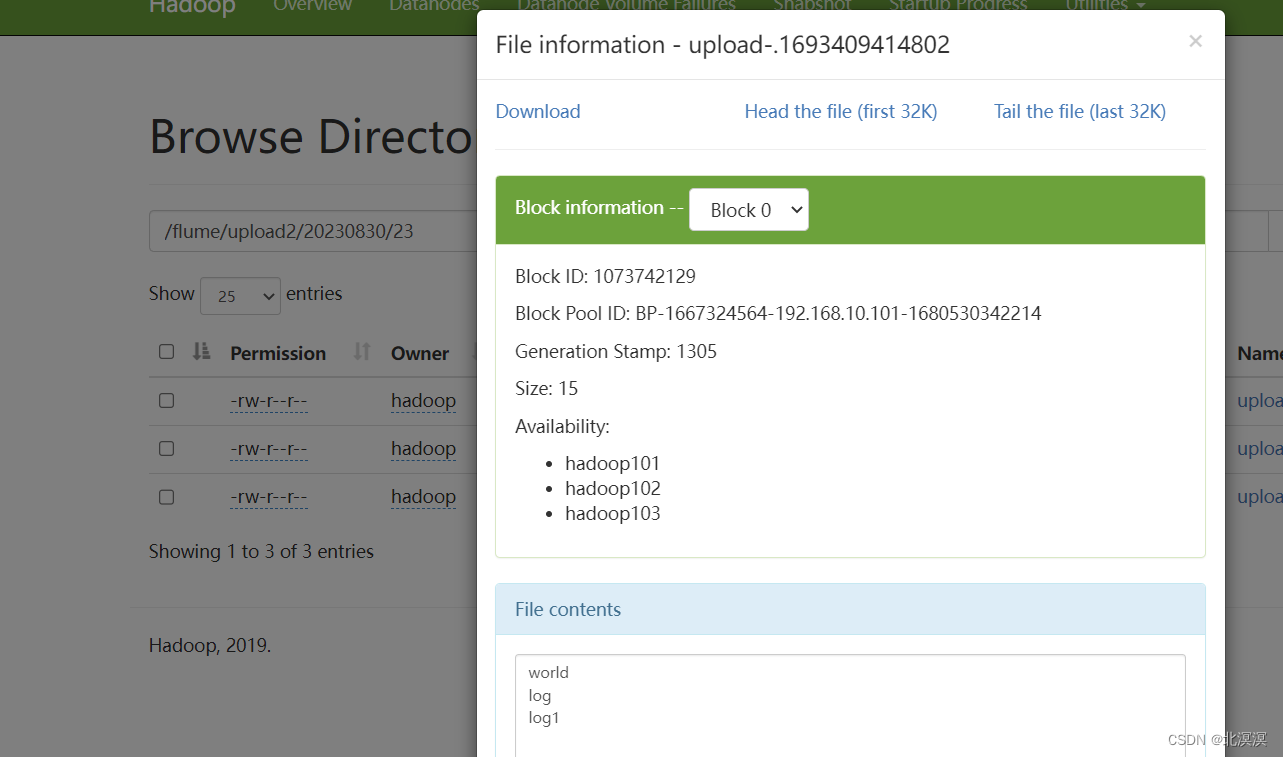 ③在job目录下创建监听目录数据的配置文件:job-taildir-flume-hdfs.conf