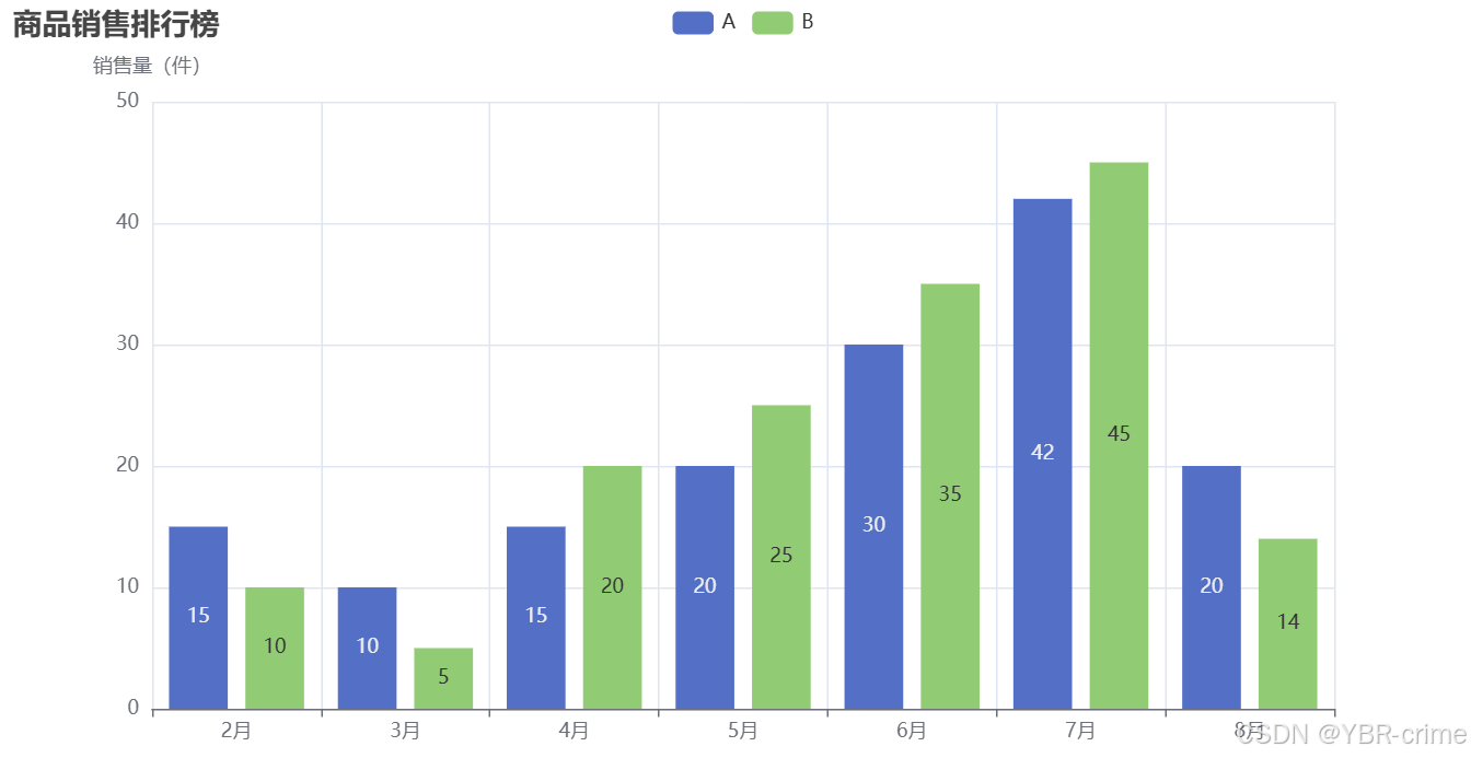 双柱状图:呈现A/B两类商品的销售数据堆积对比