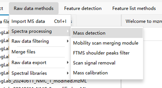 Raw data methods➡import mass data➡支持导入mzML,mzXML,mzData,NetCDF;以及原始数据Thermo RAW,Waters RAW,Agilent CSV。