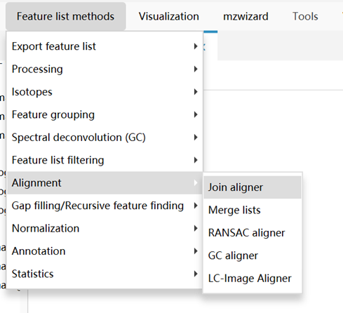 使用Join Aligner整合多组数据:Feature List Methods → Alignment → Join Aligner