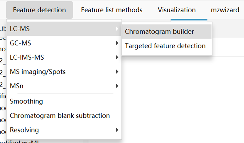 使用ADAP Chromatogram Builder:Feature Detection → LC-MS → Chromatogram Builder