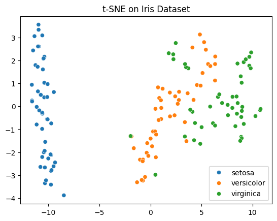 plt.title("t-SNE on Iris Dataset")