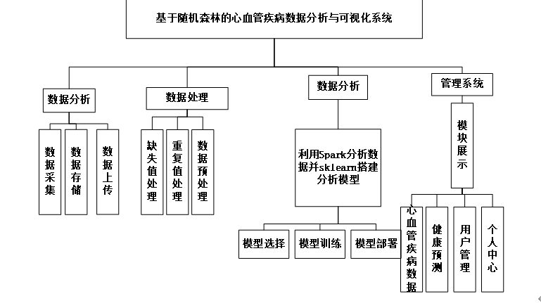 本文设计了一套基于随机森林算法的心血管疾病分析预测系统,该系统利用随机森林在处理复杂医疗数据方面的优势,实现了对患者疾病风险的准确评估。系统包含数据分析和可视化两大模块,通过直观图表展示关键风险因素和预测结果,辅助临床决策。系统采用人性化设计,支持数据批量处理、模板定制等后台功能,为心血管疾病的早期筛查和防治提供技术支持,有望提升诊疗水平并降低医疗负担。