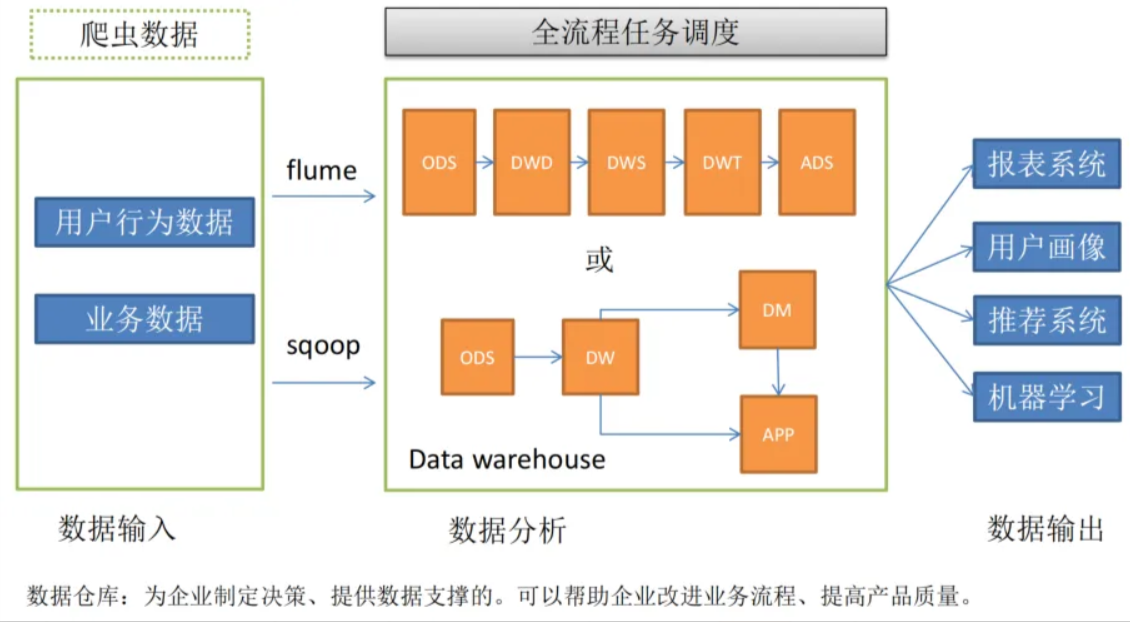 数据仓库介绍:对数据进行提取计算总结,然后进行下一阶段的使用。