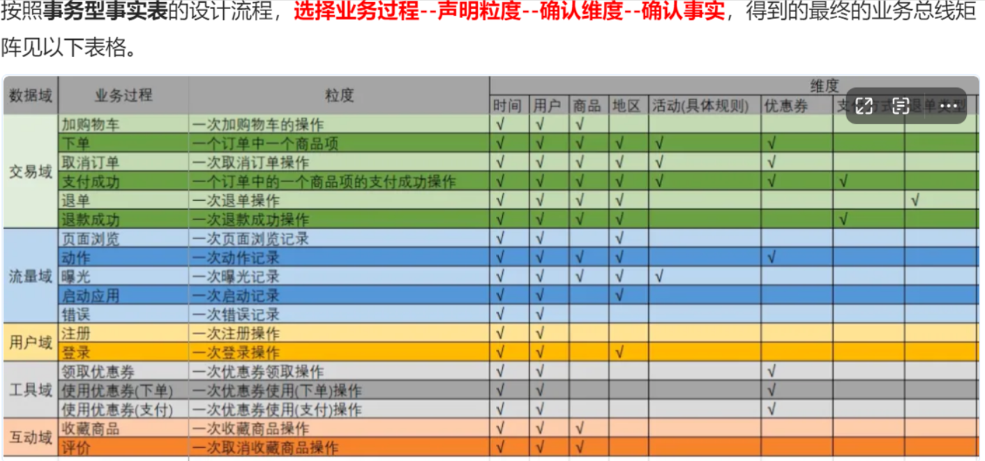 即业务活动(一个业务过程对应一个事务型事实表,多个义务过程对应一张累计型快照事实表)