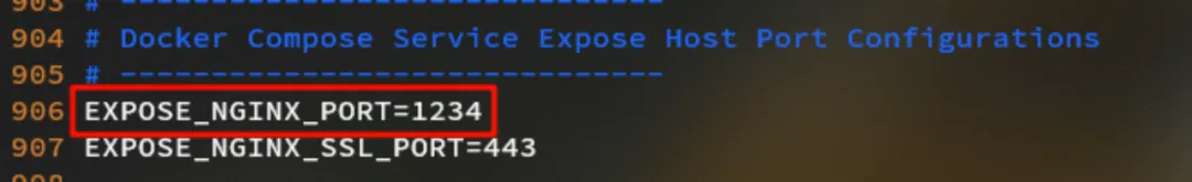 - "3000:80" # 宿主机端口号:容器端口号,将主机端口映射到之前设置的容器NGINX_PORT=80端口,注意缩进格式