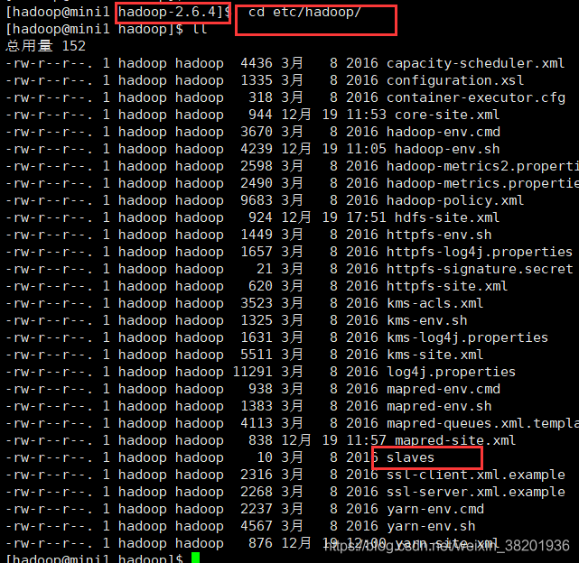cd etc/hadoop 查看slaves 文件