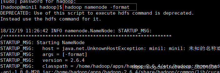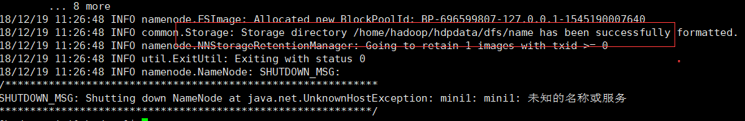 hadoop namenode -format 对配置的hadoop 进行初始化 最后提示初始化成功