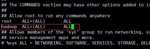 - 为HADOOP用户分配sudoer权限
