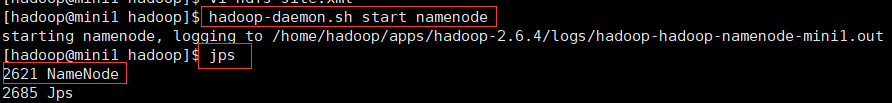hadoop-daemon.sh start namenode 启动mini1服务器的主节点之后 查看jps 是否有NameNode 主节点