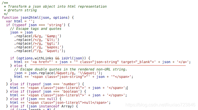 从json-viewer.js源码可以发现,源码中会判断value是否是url,如果是则直接输出