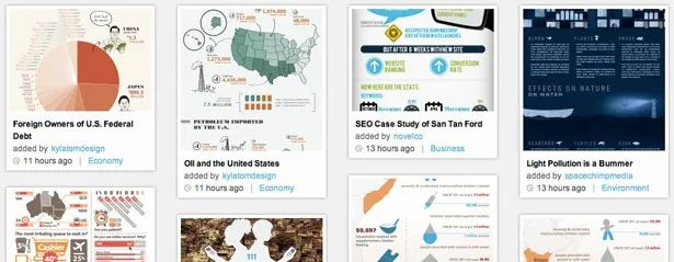 如果你需要制作信息图而不仅仅是数据可视化,目前也有大把的工具可用。Visual.ly就是最流行的一个选择。虽然Visual.ly的主要定位是:“信息图设计师的在线集市”,但是也提供了大量信息图模板。虽然功能还有很多限制,但是Visual.ly绝对是个能激发你灵感的地方。