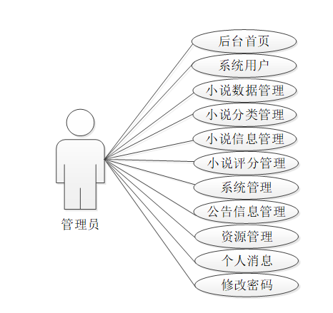 管理员是维护整个基于大数据技术的网络小说智能分析及可视化中所有数据信息的。管理员角色用例如图2-2所示。
