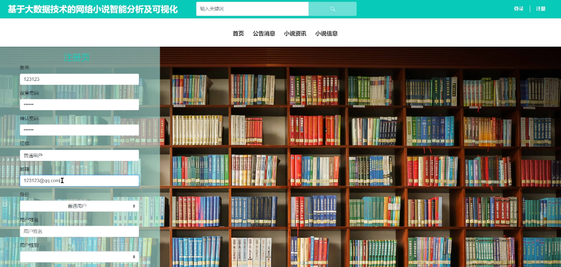 用户只要跟着基于大数据技术的网络小说智能分析及可视化的页面展示内容进行操作,就可以了。 |