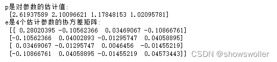 print('e是4个估计参数的协方差矩阵:\n',e)